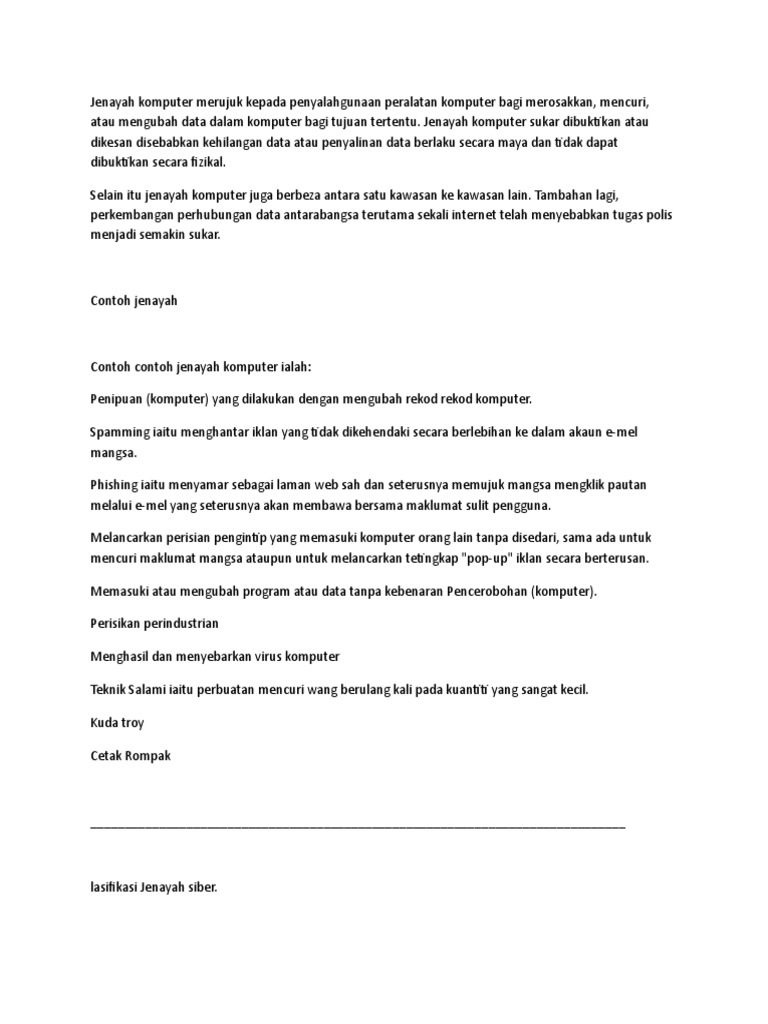 Bukti sebaliknya jenayah siber hanya menggunakan komputer mahupun peranti elektronik 6 nazura abdul manap dan jasri jamal 2003 jenayah komputer. The aim of this paper is to highlight the offences stipulated in the computer crime act as well as to compare the provisions with islamic principles. Akta 563 akta jenayah komputer 1997 suatu akta untuk mengadakan peruntukan bagi kesalahan berhubungan dengan penyalahgunaan komputer. B 175 2000 maka inilah diperbuat undang undang oleh seri paduka baginda yang di pertuan agong dengan nasihat dan persetujuan dewan negara dan dewan rakyat yang bersidang dalam.