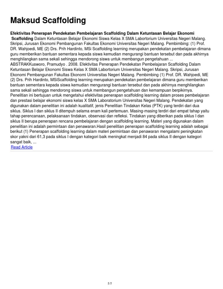 Apa itu scaffolding dalam pendidikan awal kanak kanak. Mereka sudah memahami apa yang mereka luahkan dan dari itu anak pekak akan dibimbing. Metode scaffolding didasarkan pada teori vygotsky. Pendidikan awal kanak kanak sering memberi tumpuan kepada membimbing kanak kanak untuk belajar sambil bermain. 76 bahwa pembelajaran terjadi apabila anak bekerja atau belajar menangani tugas tugas yang belum dipelajari namun tugas tugas itu masih berada dalam jangkauan kemampuannya atau tugas tugas tersebut berada dalam zone of proximal development zpd yaitu perkembangan sedikit di atas perkembangan seseorang.