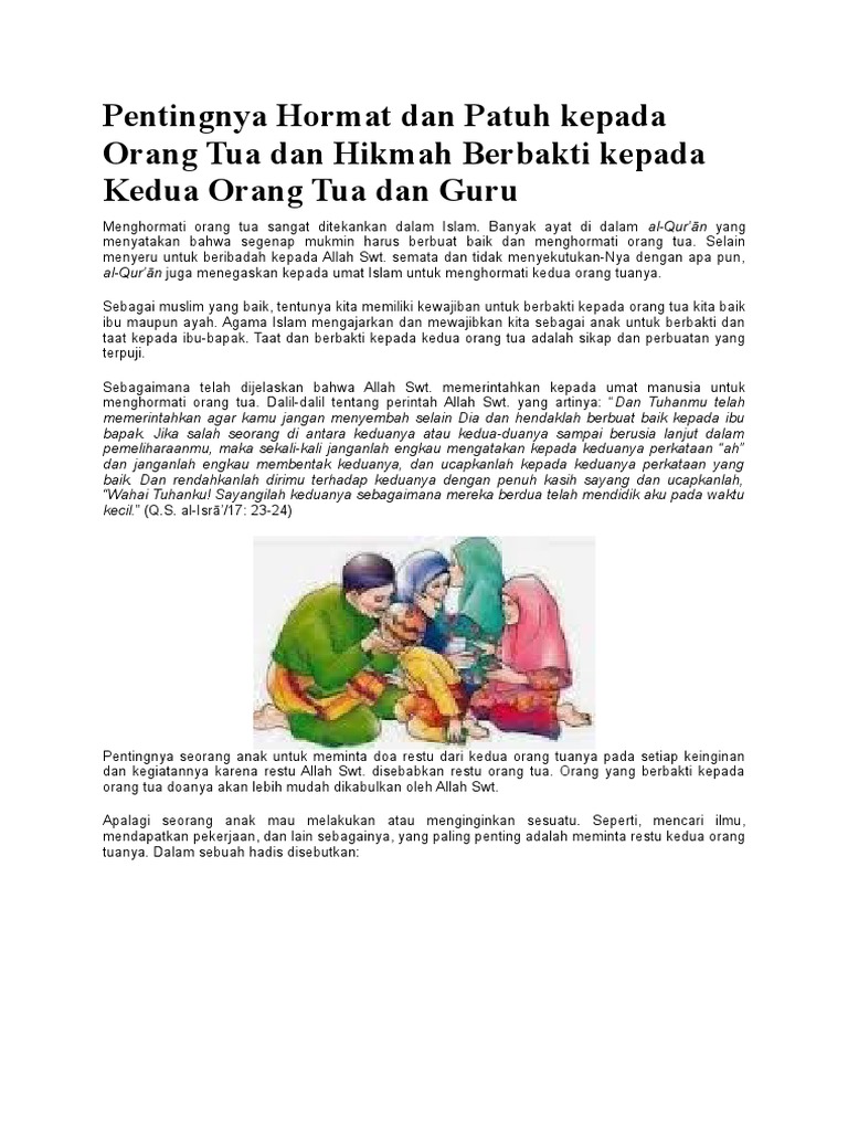 Menghormati dan taat kepada ibu bapa akan mewujudkan suasana yang harmoni damai dan tenang dalam keluarga. Surah al alaq segumpal darah ayat 1 5 mutiara hadis. Sebagai manusia tentu kita menyadari bahwa orang tualah yang sangat berjasa kepada kita dalam hal apapun mulai dari lahir sampai dewasa maka seyogyanya kita berbakti kepada keduanya. Daripada anas bin malik rasulullah saw bersabda bermaksud.
