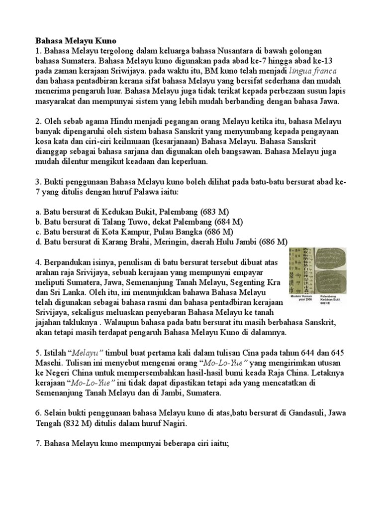 Kesan kesan dan cara cara untuk mengatasi masalah penggunaan bahasa rojak. Mengenai bukti bahasa melayu kuno terdapat empat batu bersurat yang penting iaitu yang dijumpai di. Ciri ciri bahasahasahasa melayu kuno. Adalah tentang beberapa syarat undang2 khususnya undang 2 hutang piutang dan hukuman kesalahan bahan bukti pengunaan bahasa melayu klasik batu bersurat.