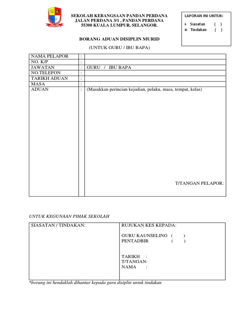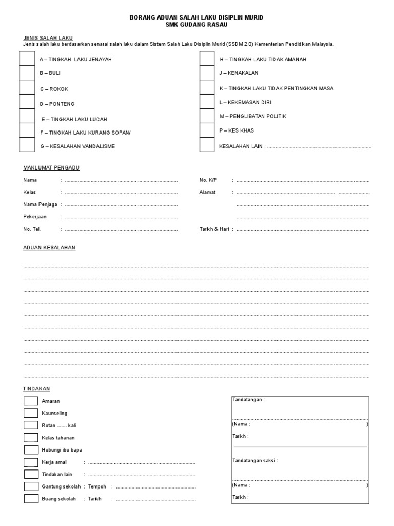 Borang rekod kesalahan disiplin murid there is document borang rekod kesalahan disiplin murid available here for reading and downloading. Contoh format laporan discipline murid yesus contoh format laporan discipline murid vs guru contoh format laporan discipline muridzo contoh format laporan discipline murid smp contoh format laporan disciplined contoh format laporan discipline and punish contoh format laporan discipline children contoh format laporan discipline in schools contoh format laporan aktiviti contoh format. Murid dipantau dengan penggunaan kad spot oleh guru kelas guru subjek guru disiplin dan guru kaunseling sendiri. Di bahagian comment sila sertakan aduan anda mengikut format berikut.