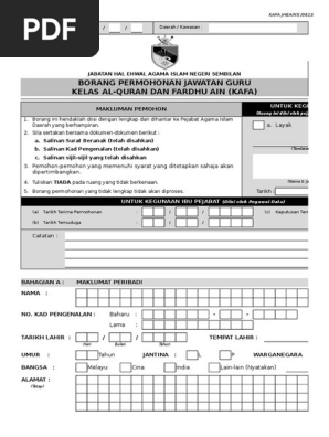 Borang permohonan guru kafa negeri sembilan. Berikut ini adalah info mengenai borang permohonan guru kafa negeri kedah yang sedang anda cari. Poskod negeri makluman pemohon jabatan agama islam wilayah persekutuan borang permohonan guru kafa kelas al quran dan fardhu ain gambar ukuran passport warna no. 606 766 4100 faks. Borang g tuntutan elaun guru kafa tulen v5 2020.