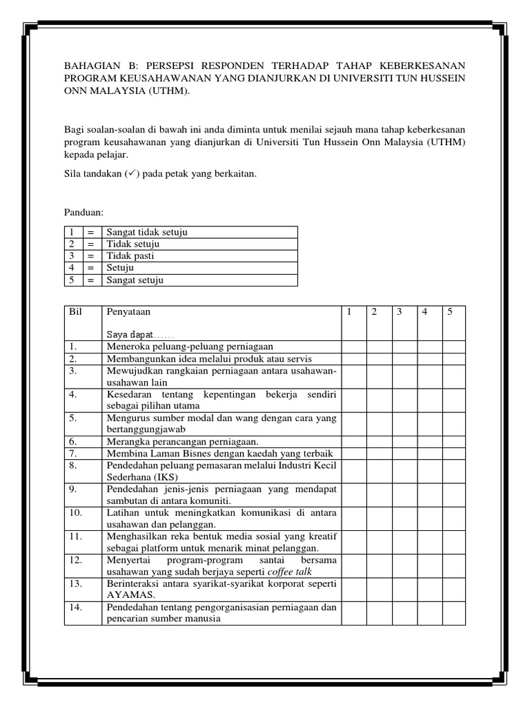 Borang soal selidik bss panduan untuk pelajar wus101 teras keusahawanan. Borang soal selidik minat keusahawanan. Related posts to contoh borang soal selidik keusahawanan contoh borang soal selidik keusahawanan 2017 09 11t23 16 00 07 00 rating. Jika anda mencari contoh borang soal selidik kajian keusahawanan maka anda berada di tempat yang tepat blog contohakar memiliki banyak koleksi gambar seperti contoh borang soal selidik kajian keusahawanan gambar ini tersedia dalam format jpg png gif.