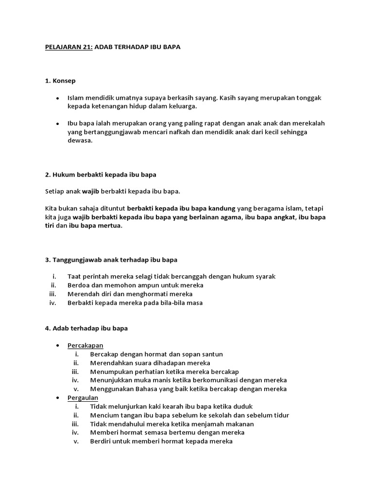 Kalau ibu bapa kita marah atau kecil hati dengan kita maka jawabnya susah lah hidup kita. Memberi bantuan kepada sama ada wang atau sebagainya. Doa kepada ibu bapa 2. Apabila kedua ibu bapa kita meningkat tua tiada lain yang diharapkan selain kasih sayang dan perhatian daripada anak cucu.