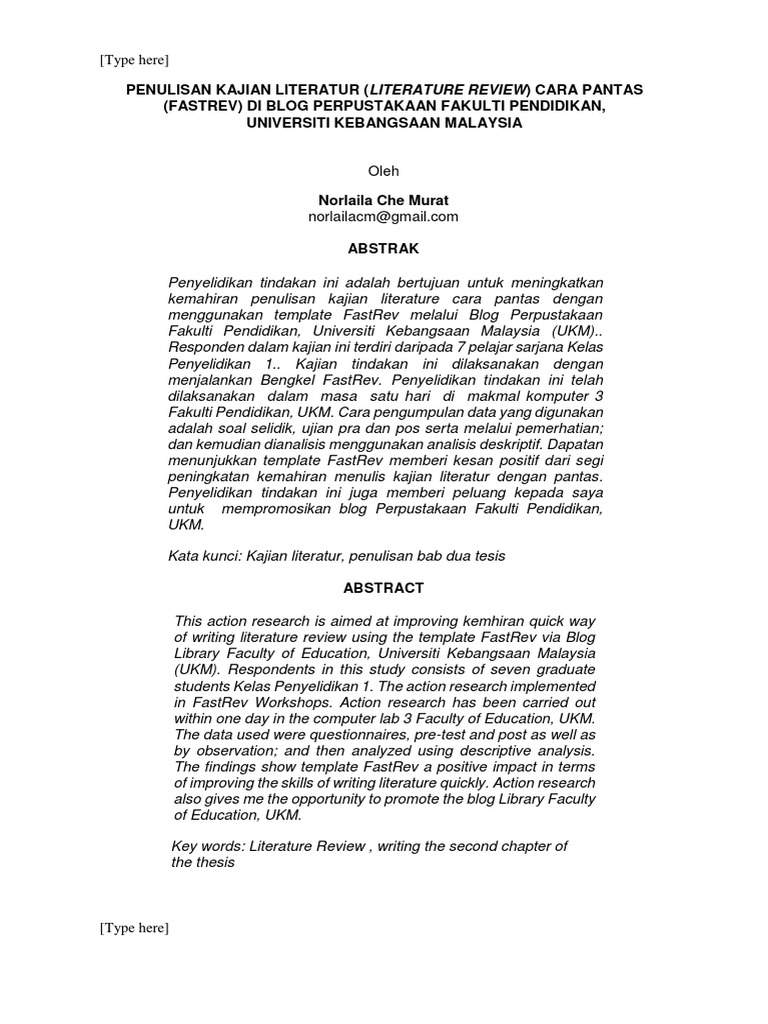 Kesalahan tersebut berakibat fatal karena mempengaruhi proses penelitian sampai laporan penelitian jadi salah arah. Rapa sumber untuk menulis kajian literatur. Sorotan literatur kajian yang dijalankan oleh abdul razak dan rashidi 1997 adalah untuk menentukan hubungan antara gaya pembelajaran dengan pencapaian sains dan matematik sekolah menengah rendah. Literature review bukannya ringkasan terhadap sesebuah kajian lain.
