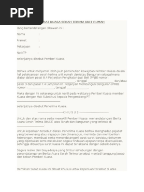 Contoh surat jual beli tanah. Contoh surat kuasa serah terima surat kuasa ini digunakan untuk mewakili pemberi kuasa untuk bertindak atas nama dan atas kepentingan pemberi kuasa dalam hal penyerah terimaan sesuatu berupa benda fungsi jabatan atau hak dari atau ke pihak lain.