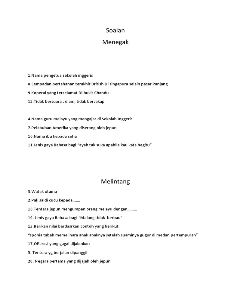 Pasir panjang contoh. Leftenan adnan bijak mengesan helah tentera jepun yang menyamar sebagai tentera india yang memakai turban ketika menyerang askar melayu di pasir panjang. Klik di sini teknik plot. Gaya bahasa novel leftenan adnan simile bahasa inggeris perbandingan sesuatu dengan sesuatu yang lain dengan menggunakan kata bandingan iaitu seperti umpama bak bagai se dan sebagainya contoh.
