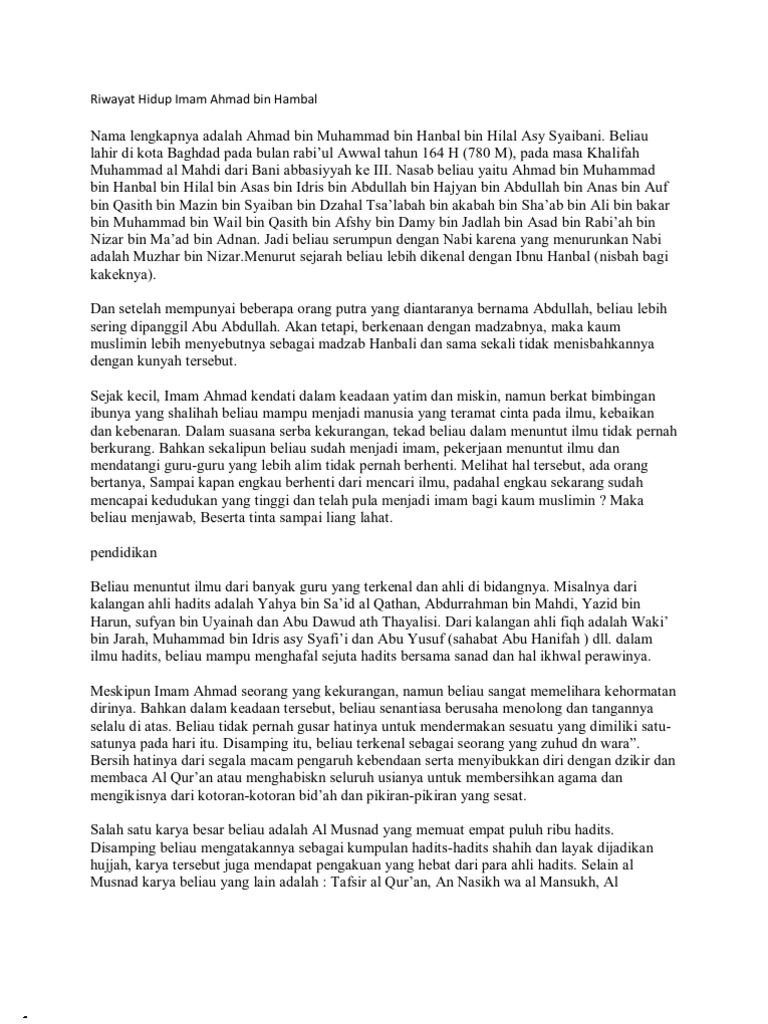 أحمد بن حنبل ahmad bin hanbal 780 164 ah 855 241 ah merupakan sarjana muslim dan ahli teologi selain daripada pengasas mazhab hanbali beliau berperanan sebagai imam darul salam mufti di iraq dan juga seorang ahli hadith yang zuhud soleh serta sabar di dalam.