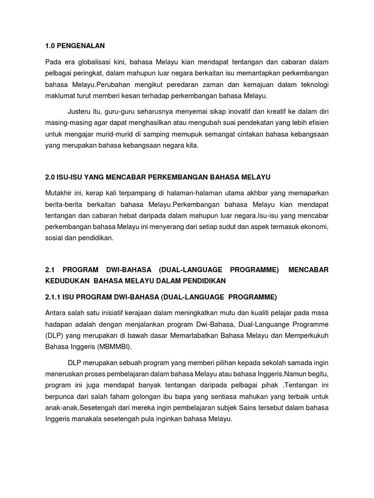 Isu dan cabaran bahasa melayu di malaysia bmm1014. Hebat dari segi kandungan ilmunya. Profesor penyelidikan produk dan ketamadunan melayu islam universiti sultan zainal abidin unisza ini berkata isu sebegitu tidak seharusnya wujud lagi pada era ini. Oleh itu bahasa melayu sejak lebih daripada satu alaf telah memiliki martabat sebagai bahasa dan tamadun besar. Kemajuan dalam teknologi maklumat memberi kesan secara langsung atau tidak langsung dalam kehidupan dan sistem pendidikan.