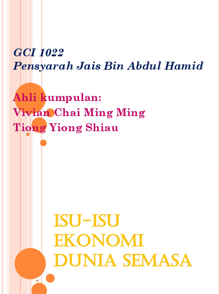 Selain itu kita juga boleh mengetahui kesan kesan perubahan ekonomi dunia semasa terhadap malaysia. Kita dapat mengesan kuasa kuasa baru ekonomi. Masalah jangka pendek atau masalah stabilisasi. 6 isu isu ekonomi 1.