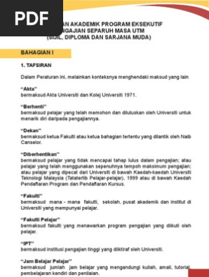 Maksud 1 credit 40 notional hours of student academic load boleh menjadi dasar perkiraan jam bergraduat diploma eksekutif. Kajian dilakukan dengan mencari meneliti dan memilih beberapa ayat ayat al qur ˇan yang bersesuaian untuk dijadikan asas pendidikan awal kanak kanak. Kajian tentang penggunaannya dalam fatwa fatwa negeri perak 1994 2010 zamri bin hashim disertasi ini dikemukakan untuk memenuhi keperluan bagi ijazah sarjana usuluddin bahagian ii secara berkursus dan disertasi jabatan al quran dan al hadith akademi pengajian islam universiti malaya kuala lumpur 2011. Di malaysia kabinet merupakan badan tertinggi yang menjalankan kuasa eksekutif.