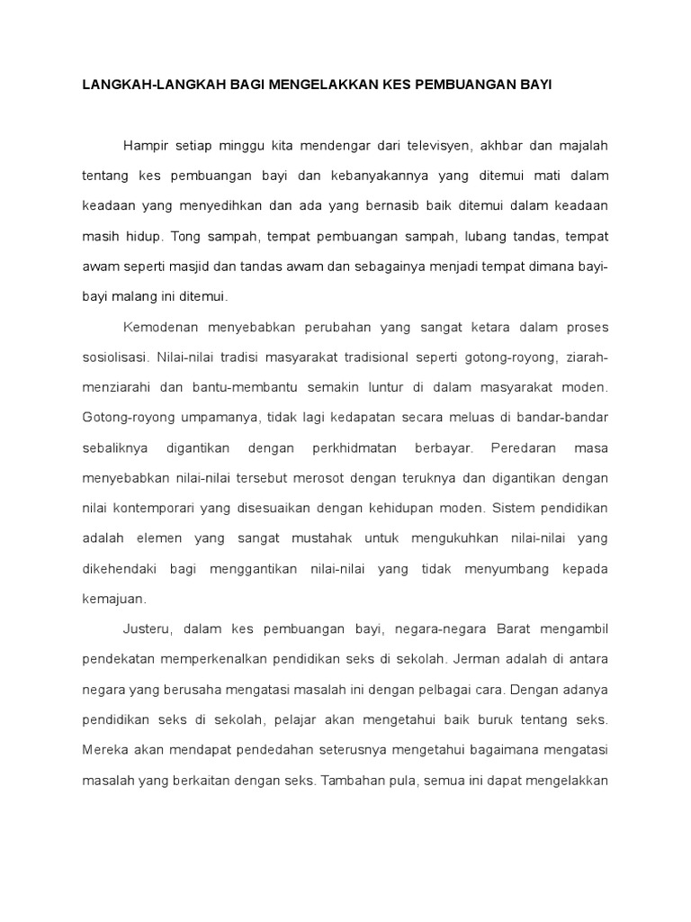 Masyarakat hendaklah diberi pendidikan keibubapaan melalui pelbagai program 2. Pada kali ini saya kongsikan beberapa karangan bahasa melayu yang sesuai untuk pelajar pt3 jadikan panduan. T kes pembuangan bayi k usaha f umum isi. Hal ini merupakan fenomena yang buruk apabila tidak ditangani dengan kadar segera.