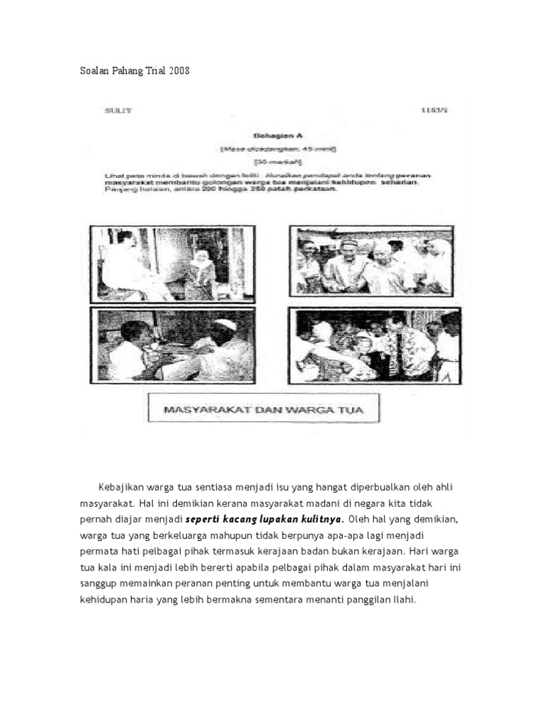 Warga tua telah melalui pelbagai rintangan dan dugaan untuk membesarkan anak anak. Ekoran daripada itu isu keluarga seperti pengabaian warga emas dapat dikurangkan. Warga tua merujuk ibu bapa datuk atau nenek bapa saudara atau ibu saudara yang sudah berumur. Stpm ujian bertulis 21 november 2011 15 disember 2011 pmr ujian bertulis 4 6 oktober 2011 10 11 oktober 2011 5 hari spm ujian bertulis 14 november 14 disember 2011 16 hari profil cikgu min.