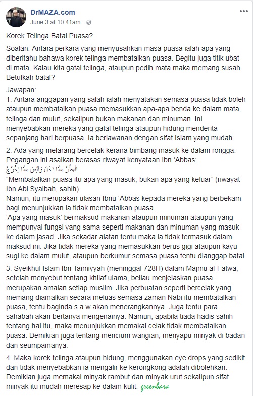 Korek telinga batal puasa tak. Antara perkara yang menyusahkan masa puasa ialah apa yang diberitahu bahawa korek telinga membatalkan puasa. Selawat dan salam ke atas nabi ﷺ keluarga para sahabat dan mereka yang mengikut jejak langkahnya hingga hari kesudahan. Korek hidung telinga ketika berpuasa ustaz azhar idrus official duration. Apabila tibanya bulan ramadhan masih ramai lagi yang tidak jelas dan tidak maklum dengan hukum korek telinga dan juga hukum korek hidung batal puasa.
