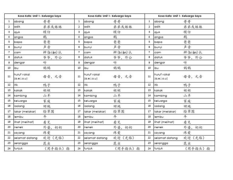 Kosa Kata Bahasa Melayu Tahun 4 Sjkc