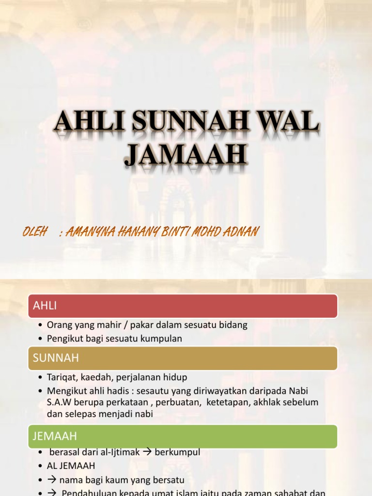 Apakah maksud ahli sunnah waljamaah. Nama nama dan sifat ahlus sunnah. Nama itu secara rasminya di masyhurkan oleh imam abu hasan al asya ari 330 hijriah dan abu mansur al maturidi 333 hijriah. 2 tidak ada satupun yang dilihat nama nama diatas disandarkan pada seorang tokoh.