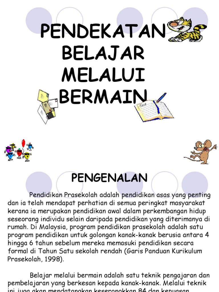 Pendekatan belajar sambil bermain. Disampaikan pada seminar mendidik anak yang diselenggarakan oleh sekolah teruna bangsa klaten margorejo canan wedi klaten pada jumat 29 oktober 2010. Pendidikan tadika adalah peringkat pendidikan yang paling awal bagi kanak kanak selepas pendidikan yang diperolehi daripada keluarga. Pengertian dan contoh metode belajar sambil bermain belajar sembari bermain menjadi salah satu metode belajar yang efektif dan cukup menarik terutama di kalangan anak anak melalui metode pembelajaran yang satu ini siswa menjadi lebih aktif dan kreatif. The respondents of the study are three special education teachers and three students.
