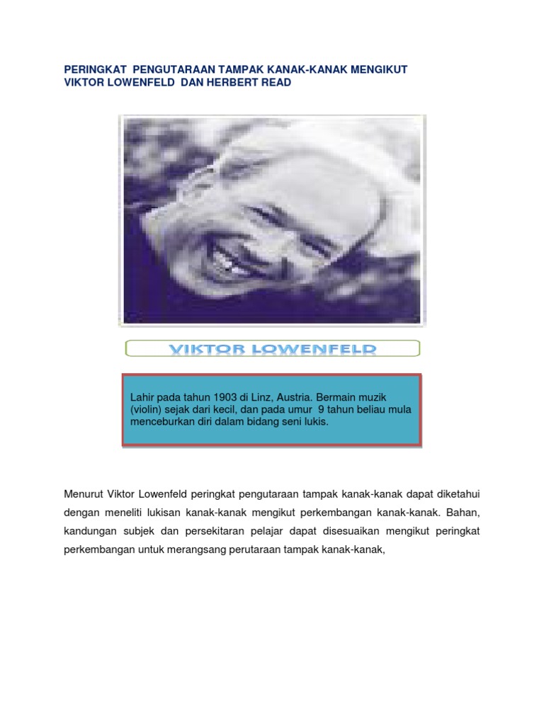 Subjek kreativiti dan seni kanak kanak psv 3103 tajuk tokoh tokoh pendidik dan pengkaji lukisan kanak kanak sir herbert read biografi sir herbert read nama penuh.