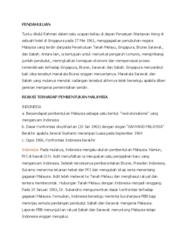 6 4 langkah langkah ke arah pembentukan malaysia m s149 suruhanjaya cobbold. Filipina memprotes pembentukan malaysia dan indonesia pula cuba menghalang pembentukan malaysia. Akibat timbul masalah masalah antara malaysia filipina dan. Reaksi negara asean indonesia dan filipina indonesia pada peringkat awal indonesia menyokong pembentukan malaysia tidak akan menghalang penubuhan ini sebaliknya mendoakan supaya kerajaan persekutuan tanah melayu berjaya dalam rancangannya.