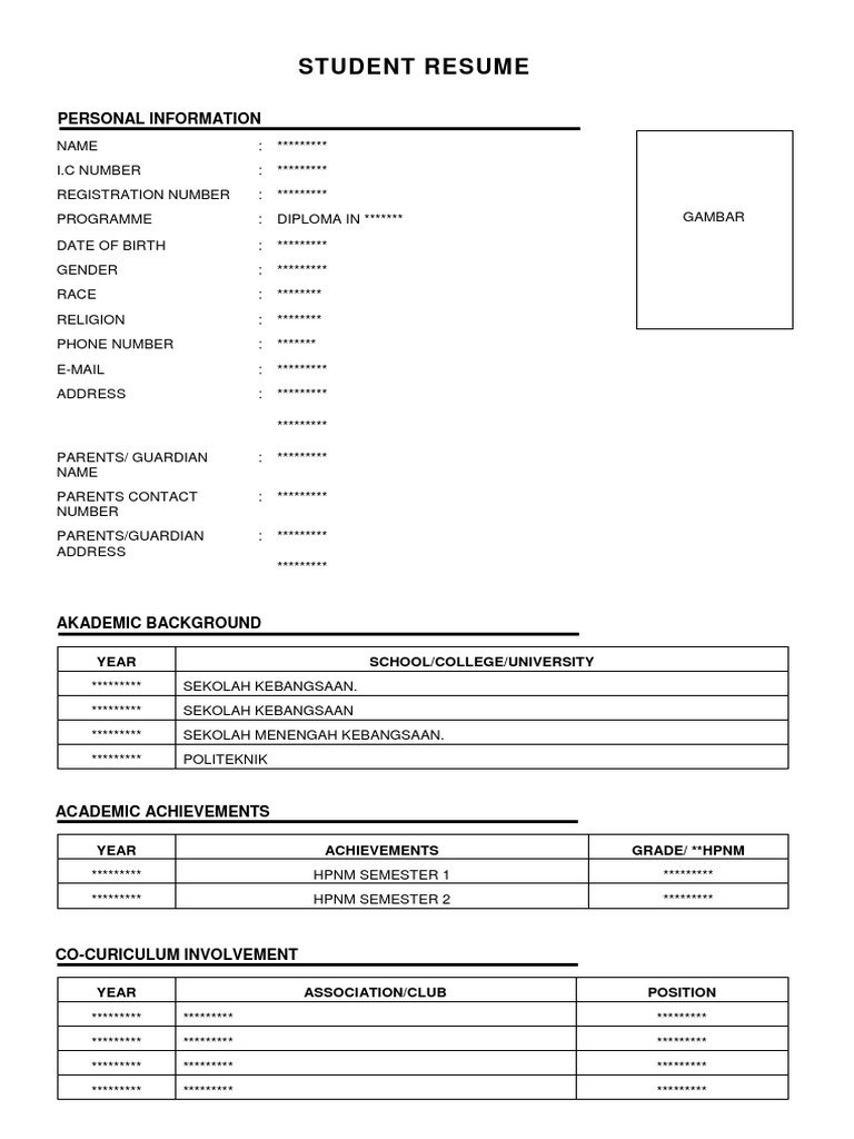 B alamat surat menyurat. A nama dan maklumat peribadi. Rizalshah bin zulkifli d304 blok d kamsis politeknik ungku omar jalan raja musa mahadi 31400 ipoh perak. Contoh resume contoh resume terbaik lengkap ini adalah hasil daripada pengalaman dan kajian tim infokerjaya selama penyediaan resume yang baik akan membantu anda dalam permohonan anda.