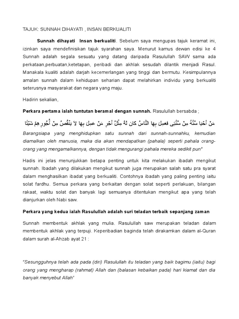 Teks syarahan rasulullah contoh teladan. Mc upacara bendera bahasa arab. Yang jelas beliau itu cuma manusia biasa bedanya beliau itu utusan allah nabi yang panggilannya rasulullah. Dikisahkan setiap kali nabi saw melintas di depan rumah seorang wanita tua nabi selalu diludahi oleh wanita tua itu. Justeru tajuk khutbah pada hari ini ialah teladani rasulullah hayati sunnah.