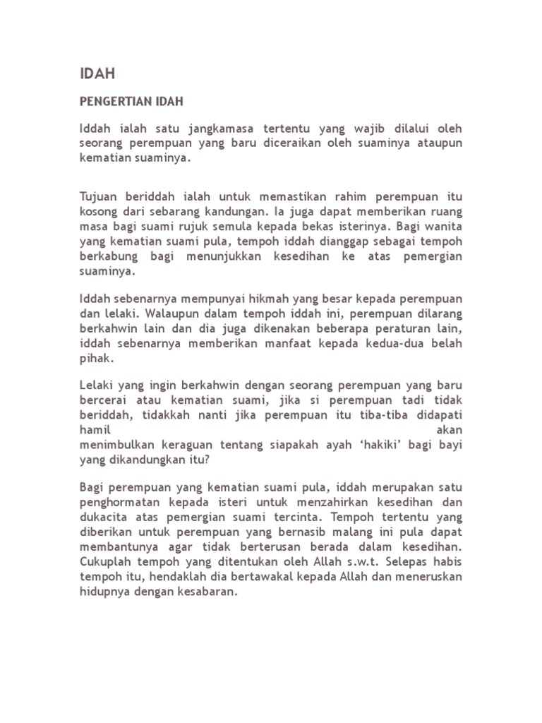 Tempoh iddah kematian suami. Atau ada pendapat lain berkenaan hal ini. Tidak halal kepada wanita yang beriman kepada allah swt dan hari akhirat berkabung untuk sesuatu kematian lebih daripada 3 hari kecuali bagi wanita yang kematian suaminya dia hendaklah berkabung selama 4 bulan 10 hari. Saya ada kemuskilan mengenai edah bagi seorang isteri yang telah kematian suami. Jika seorang perempuan berada dalam tempoh iddah talak raj ie apabila suaminya meninggal dunia ketika dia masih di dalam iddah tersebut maka iddah nya berpindah kepada iddah kematian suami.