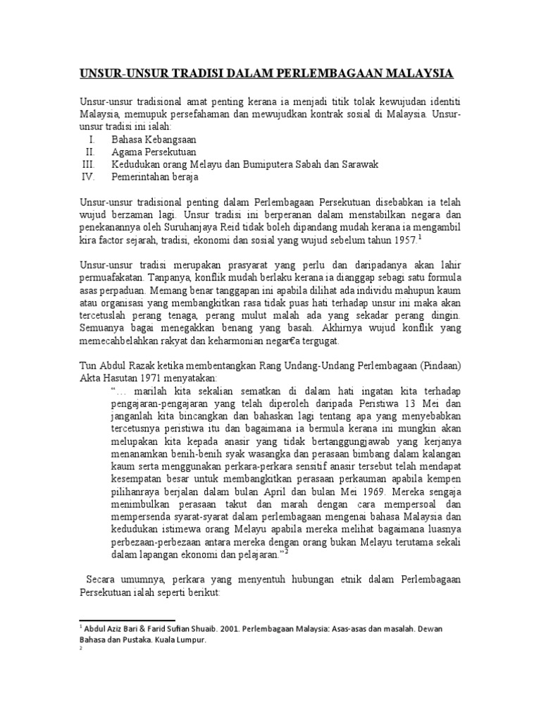 Unsur tradisi dalam perlembagaan persekutuan. Unsur unsur pemerintahan tradisi dalam beraja perlembagaan agama persekutuan. Maksud perlembagaan dokumen yang mengandungi semua susunan peraturan dan undang undang dasar yang dianggap penting bagi pemerintahan dan pentadbiran sesebuah negara. Di bawah peruntukan ini yang di pertuan agong bertanggungjawab untuk memelihara kedudukan istimewa orang melayu dan kaum bumiputera di negeri sabah dan sarawak serta kepentingan sah kaum kaum lain. Syaza yasmin binti ismail pismp 3c slideshare uses cookies to improve functionality and performance and to provide you with relevant advertising.