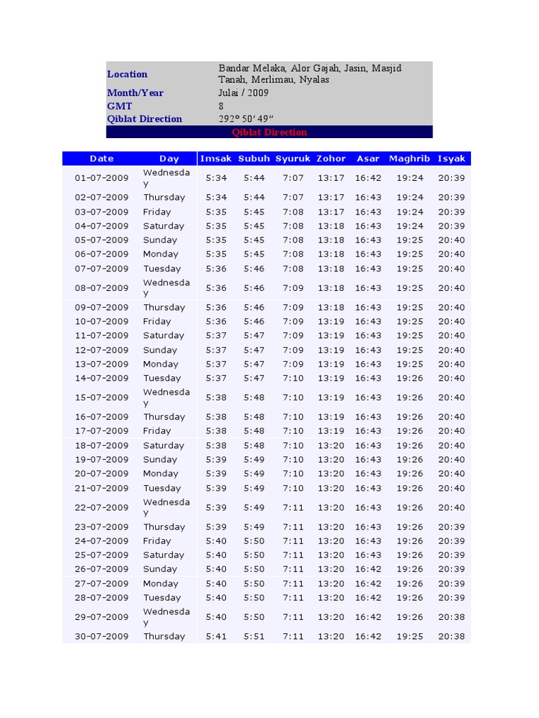 Waktu solat bandar melaka alor gajah jasin masjid tanah merlimau nyalas.